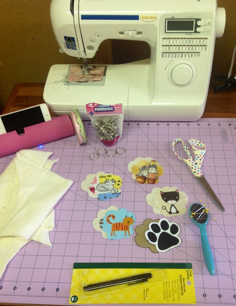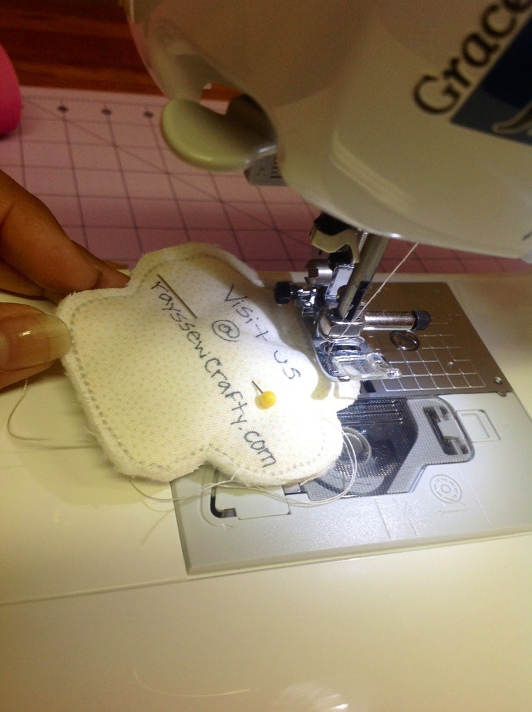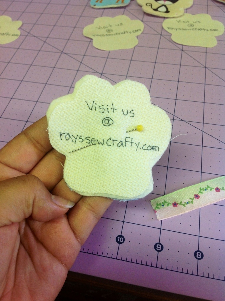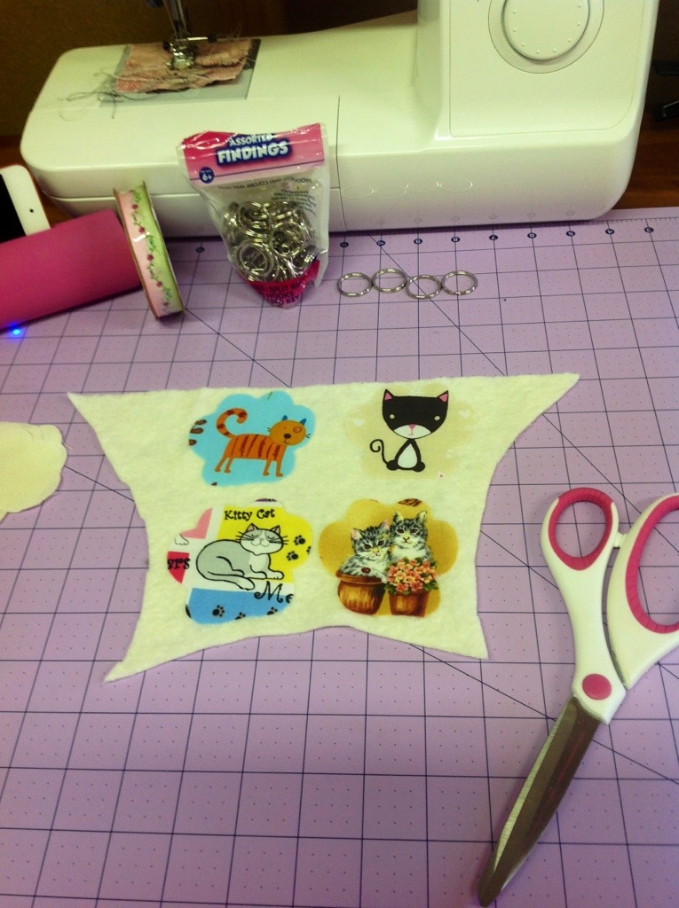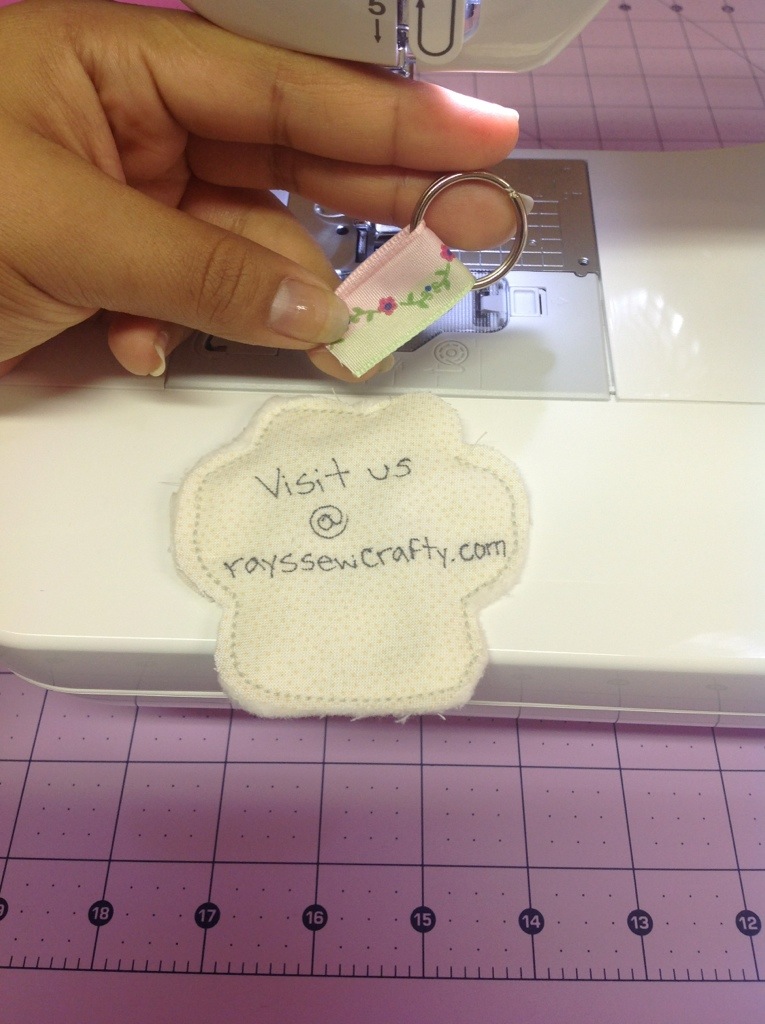 I first sewed all along the paw print and left a quarter inch opening to slip in the ribbon with the keyring…which fought me the entire time I was slipping in the ribbon. :/