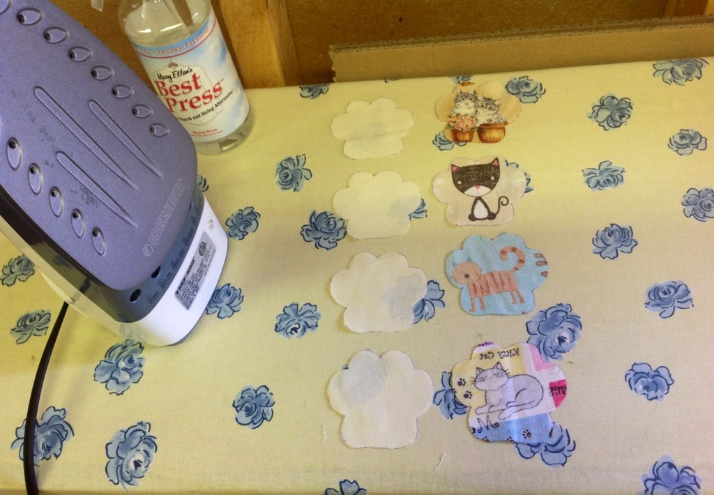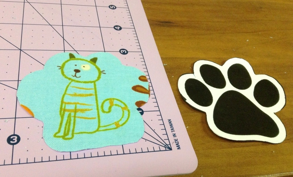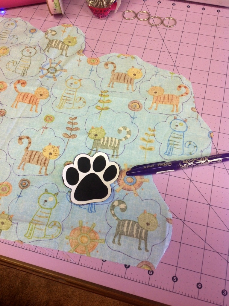 I cut out my paw print and then traced it onto a piece of hard stock paper, keeps longer when tracing on your fabric.