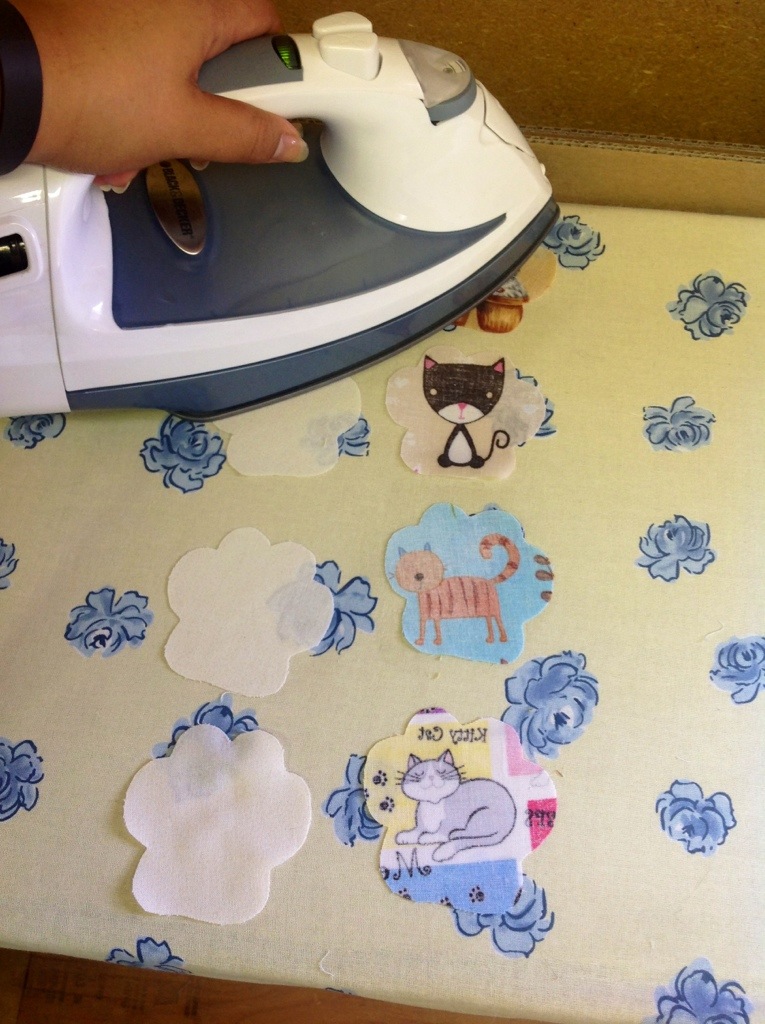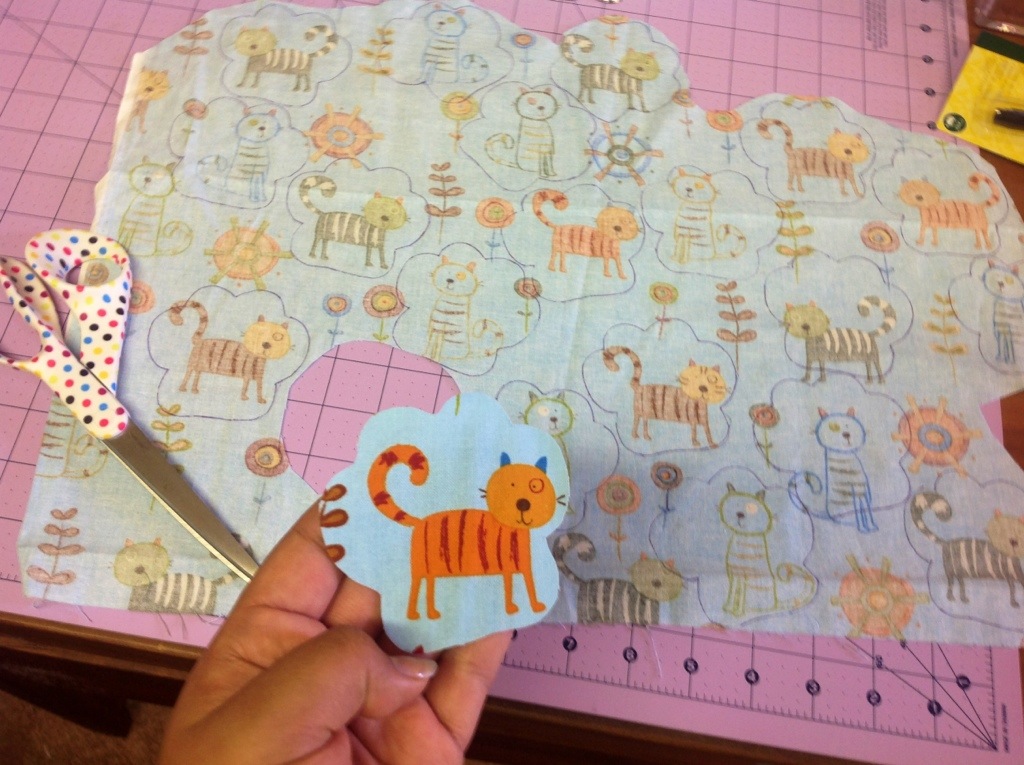 If you are using fabric with prints, make sure you trace your design with the print centered on your cutout. I found that tracing on the back of the fabric is the easiest way to center and trace your cutout.
