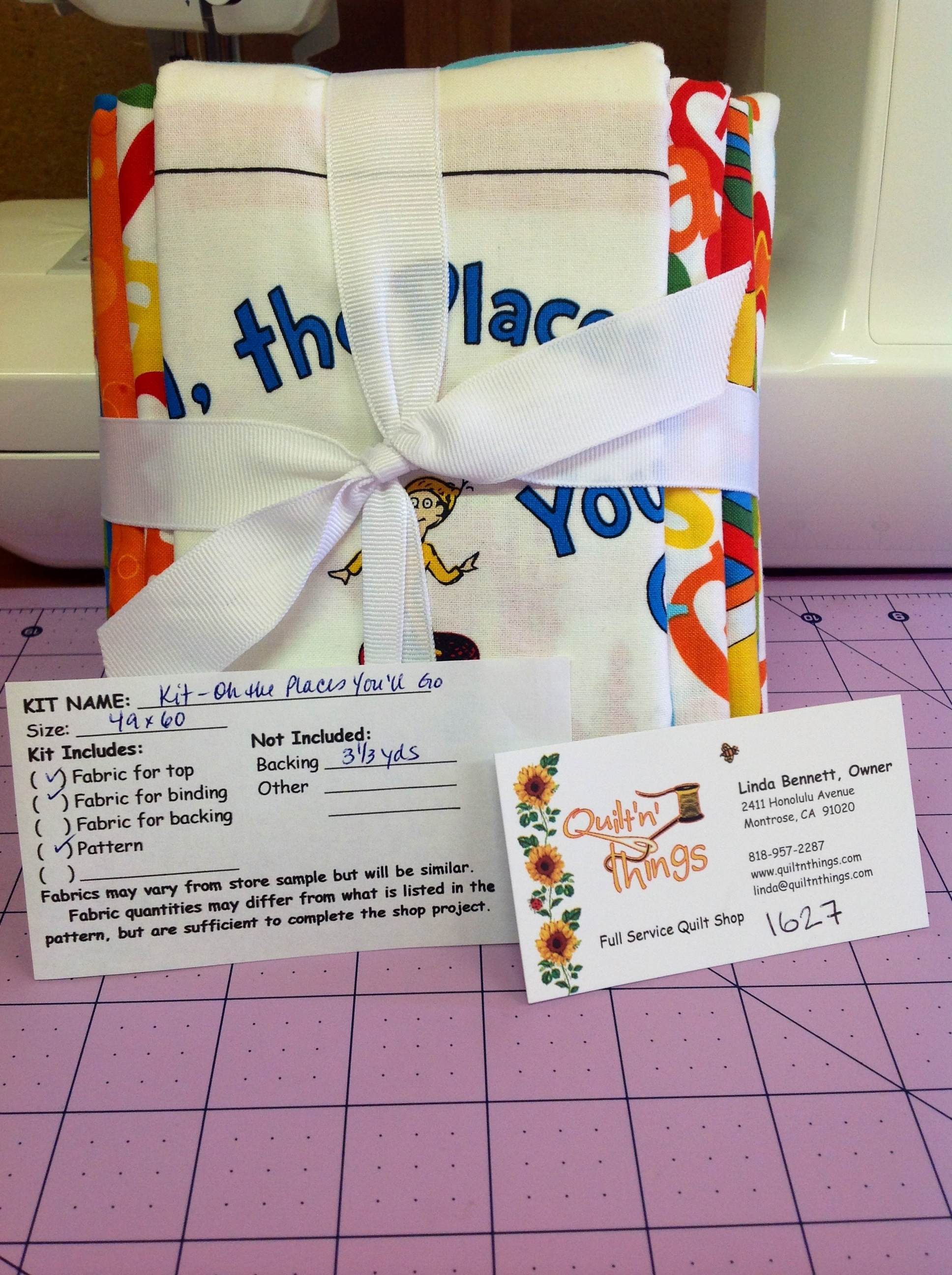 I am a big fan of ANYTHING DR.SEUSS so when I saw this yesterday, I knew I had to come back for it. Quilt’n’Things , from Montrose, CA, actually has a variety of Dr. Seuss kits that I was interested in, but unfortunately for me, I was too late to take advantage of those precious kits today. I managed to still get this one and I just love it!