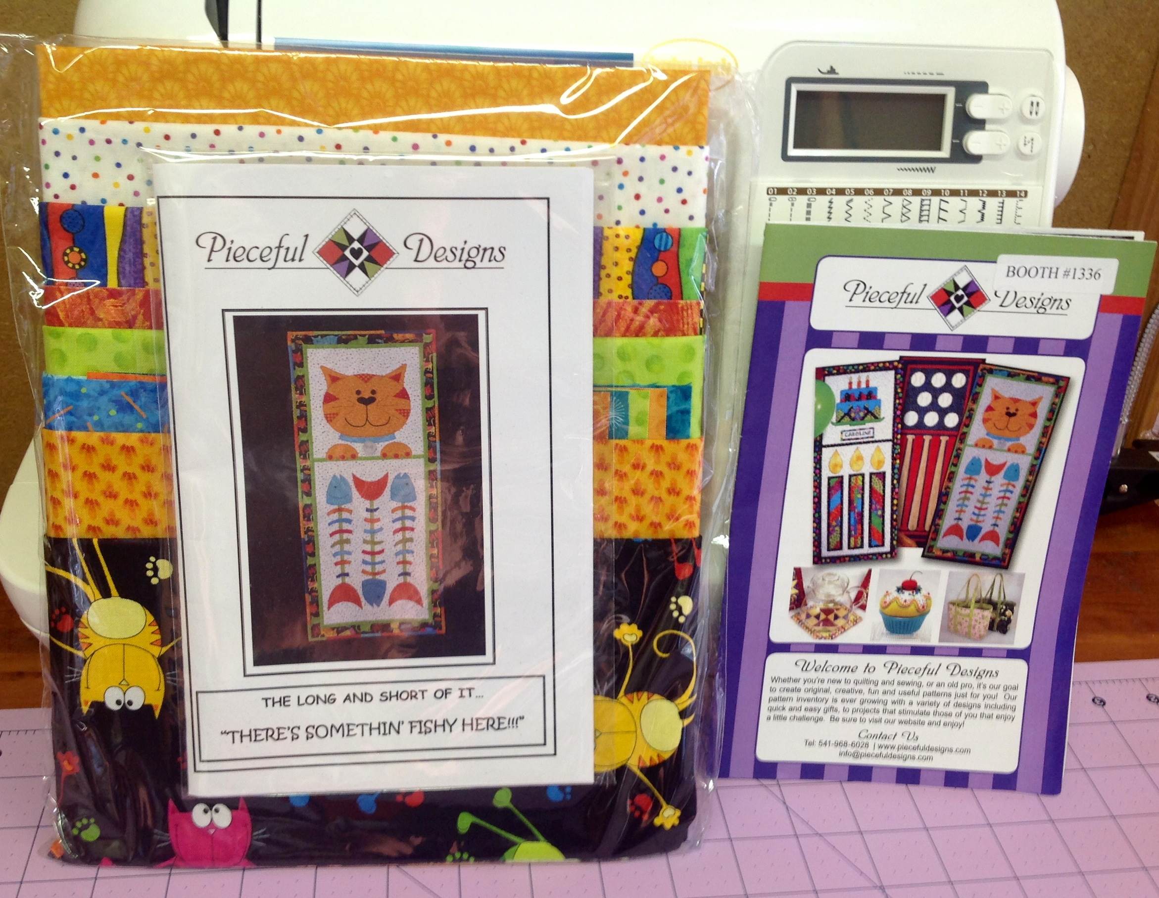 Pieceful Designs , from Eugene, OR, has so many original design patterns and kits and I couldn’t have been more excited browsing their booth! Not only do they have easy , unique and affordable patterns, but they also have ready to go kits! There’s so many designs for pet lovers, like me, children patterns, cute cupcake pincushion kits and adorable patterns on things you can use around your home like oven mitts and wine bags!