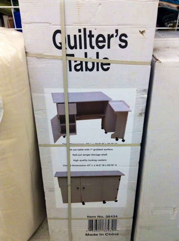 I saw this quilters table at my local Joann’s, and it caught my attention, a table to help me expedite my projects .