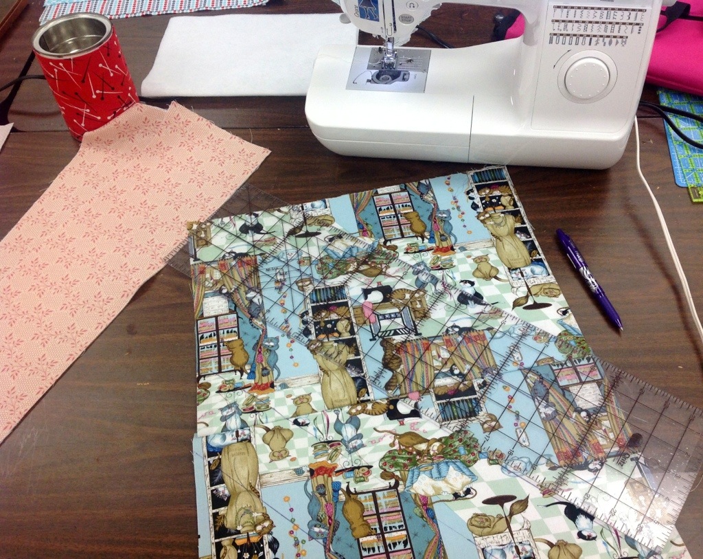 We were asked to precut the fabric before class; Guess what themed tote I am going to make??