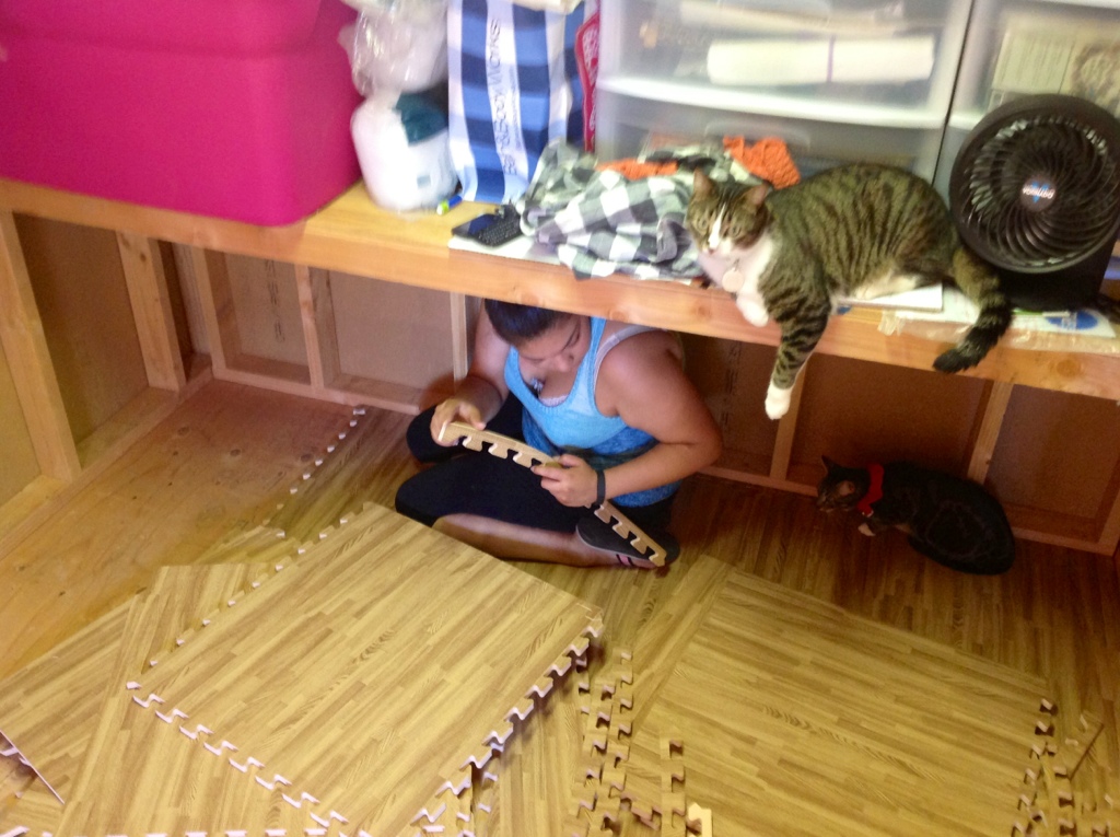 As you know, I bought some foam tiles and “installed them with Raymond, Jeanie and my amazing contractors help! πŸ™‚
