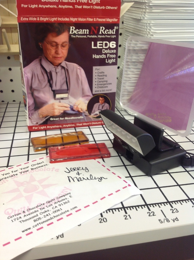 I bought a Beam N Read light, from Cotton & chocolate Quilt Company, and just absolutely LOVE IT!