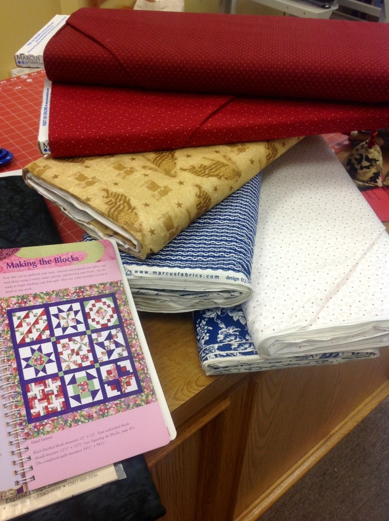 I started taking a Quilting 101 class, at the quilt cupboard, where we will be putting together a quilt with 9 blocks, each using a different technique. We are using “make your first quilt” by M’liss Rae Hawley.
