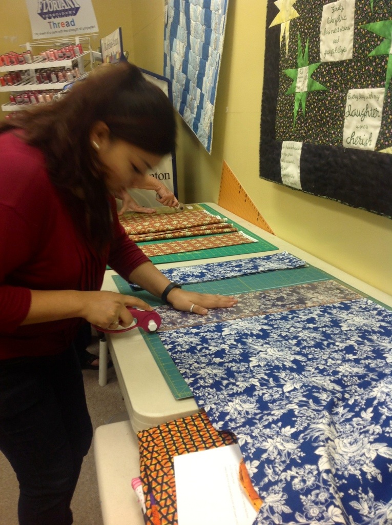 Our first class was spent learning about choosing fabric, how to properly cut fabric, using rulers and rotary cutters. I definitely learned some on how to better cut my fabric for my projects! Jill is a great teacher!