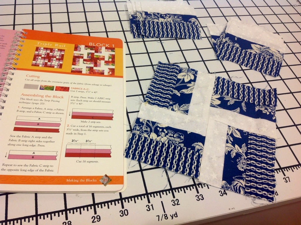 We then tackled the first block in the quilt : Triple Rail ! 🙂