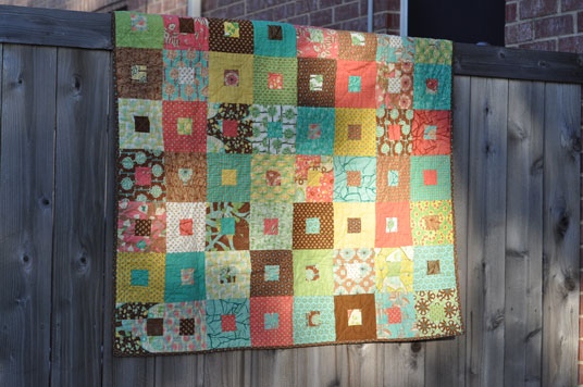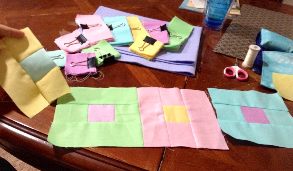 I hand sewed the first 50 squares, then got my babylock sewing machine and machine sewed the rest! π it’s still a work in progress!