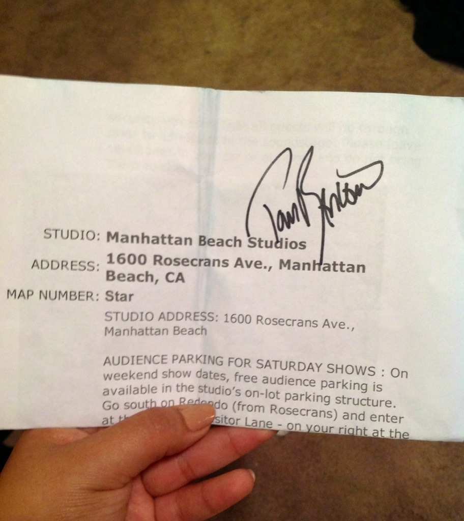 In this case, I asked him to sign my audience ticket, and he gladly did, shortly after he looked me in the eye and said “Thanks for joining us on the show today” , EEEEP!! πŸ™‚