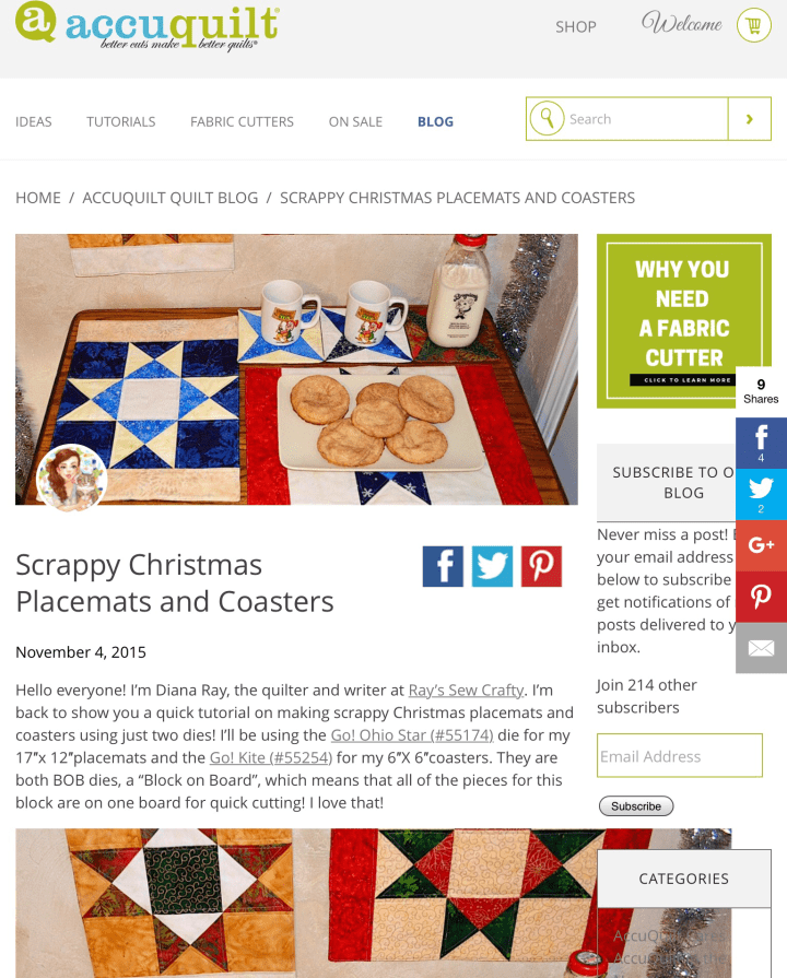 Check out my project on AccuQuilt’s blog here: https://www.accuquilt.com/blog/education/go-tutorials/scrappy-christmas-placemats-coasters/