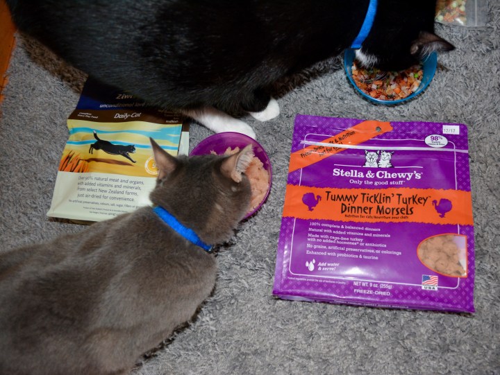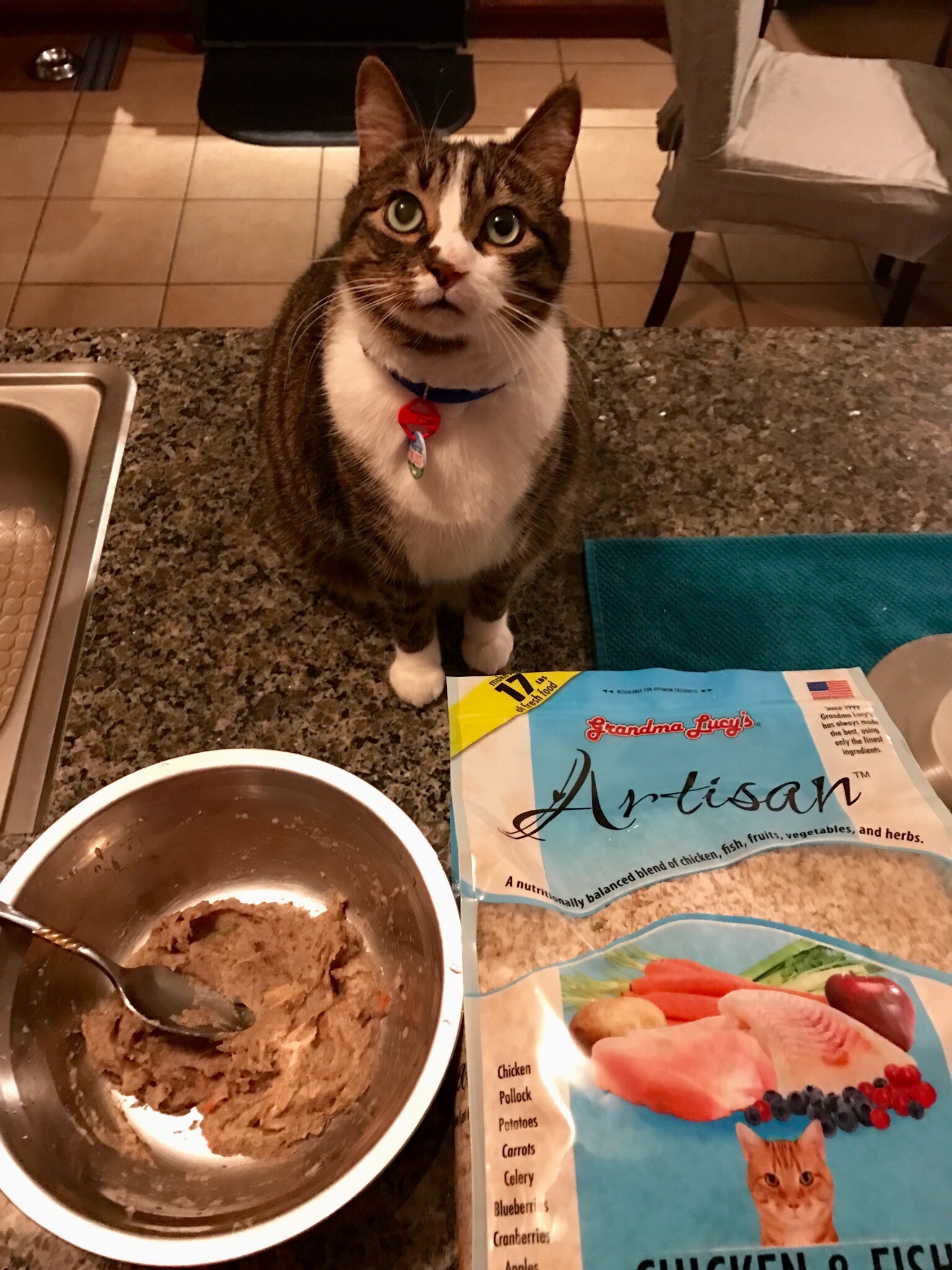Next up to bat : Grandma Lucy’s Chicken & Fish Freeze-dried / Grain -Free cat food. Wish us luck!